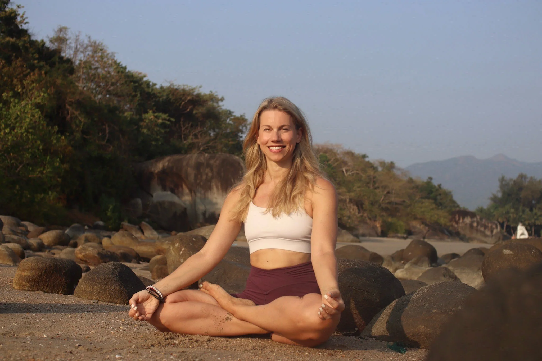 She shares her yoga offerings as well as a personal and a travel blog on her website.